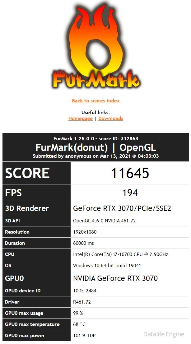 Результаты Furmark (кликни чтобы увеличить):